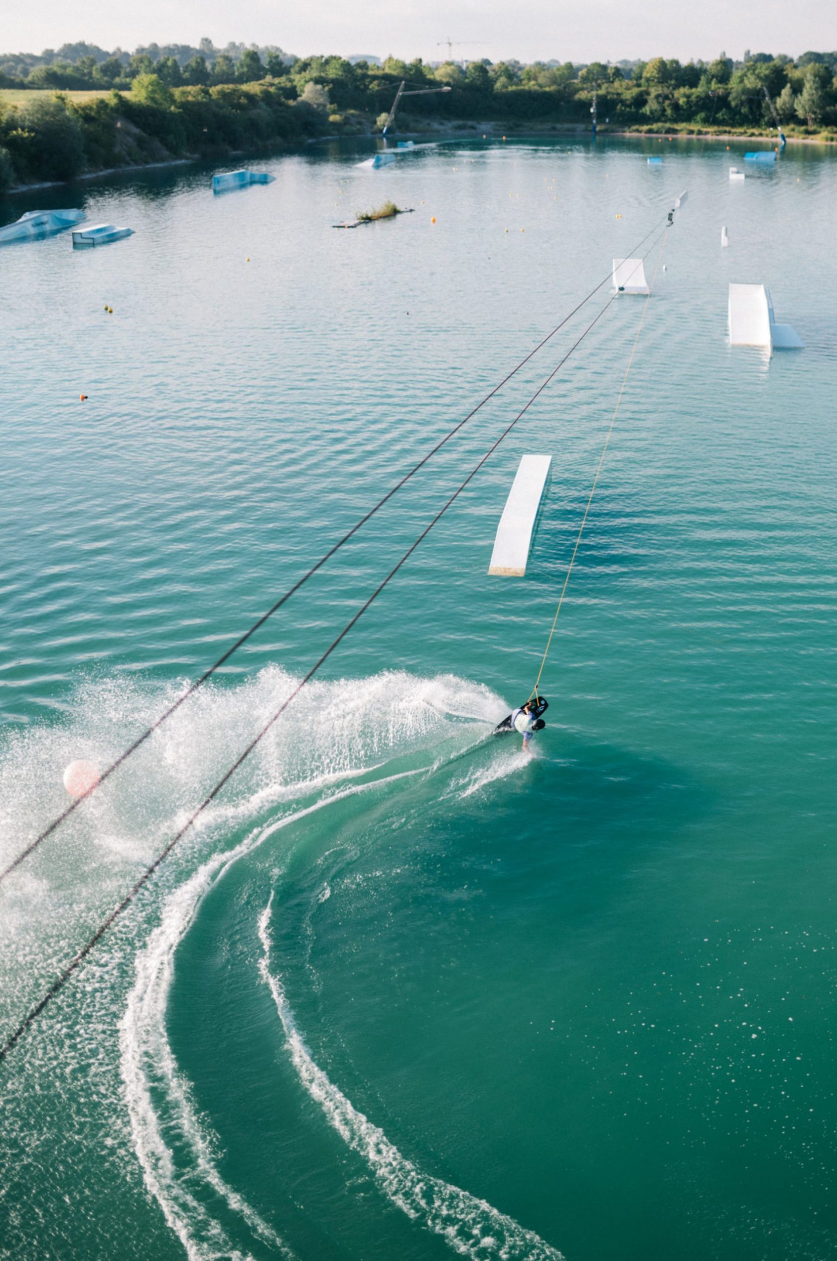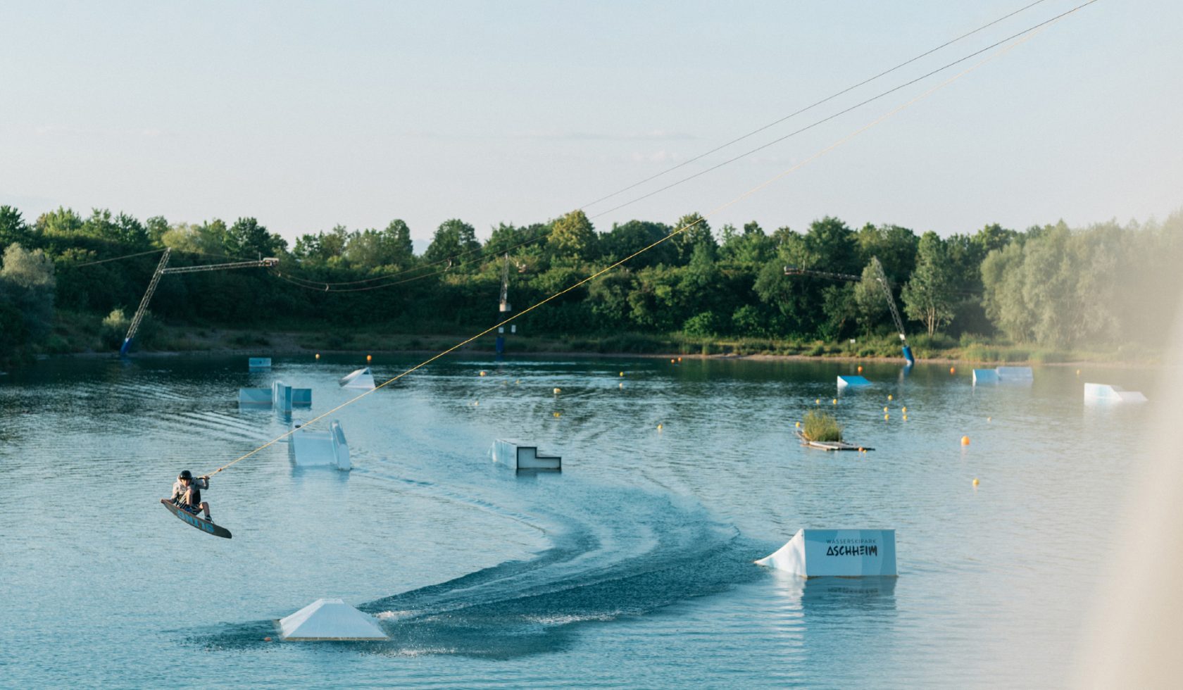 19 unterschiedliche Obstacles bieten Fahrspaß für jedes Fahrer-Level. Damit die Abwechslung nie zu kurz kommt, wird der Wakepark von unserer Crew in regelmäßigen Abständen umgestellt.