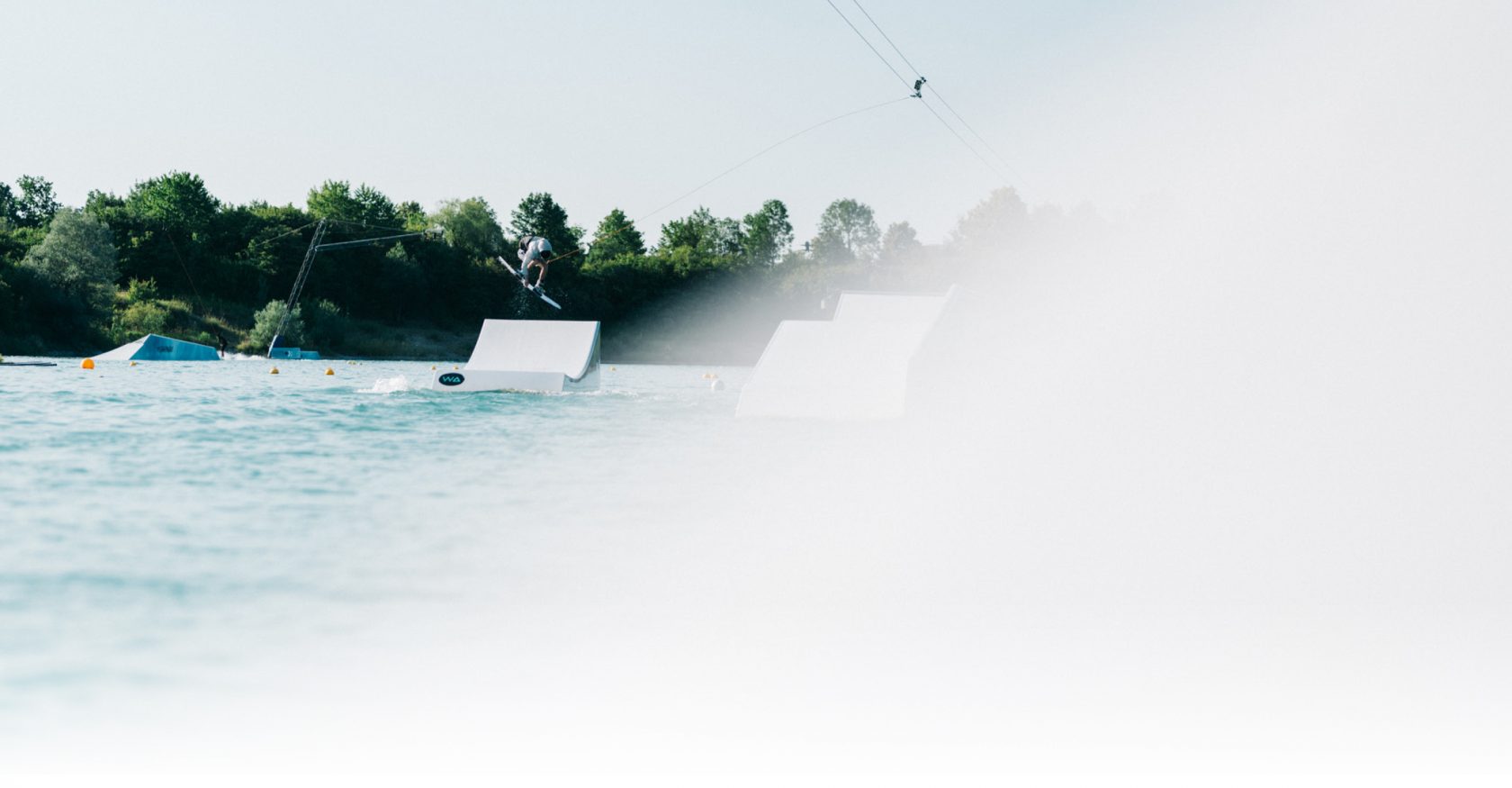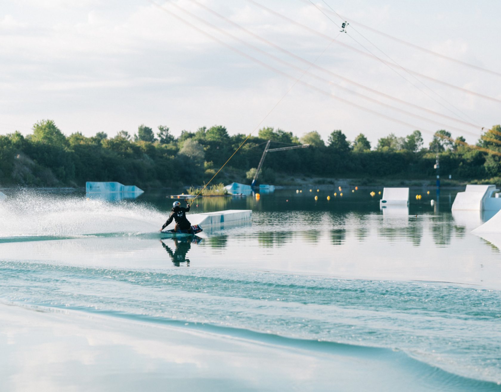 Unser Wakepark bietet eine abwechslungsreiche Mischung aus UNIT Parktech Features für Anfänger, Fortgeschrittene und Pros. Damit es nie langweilig wird, stellt die Park-Crew das Setup regelmäßig um und baut neue Hacks. Du wirst es lieben!
