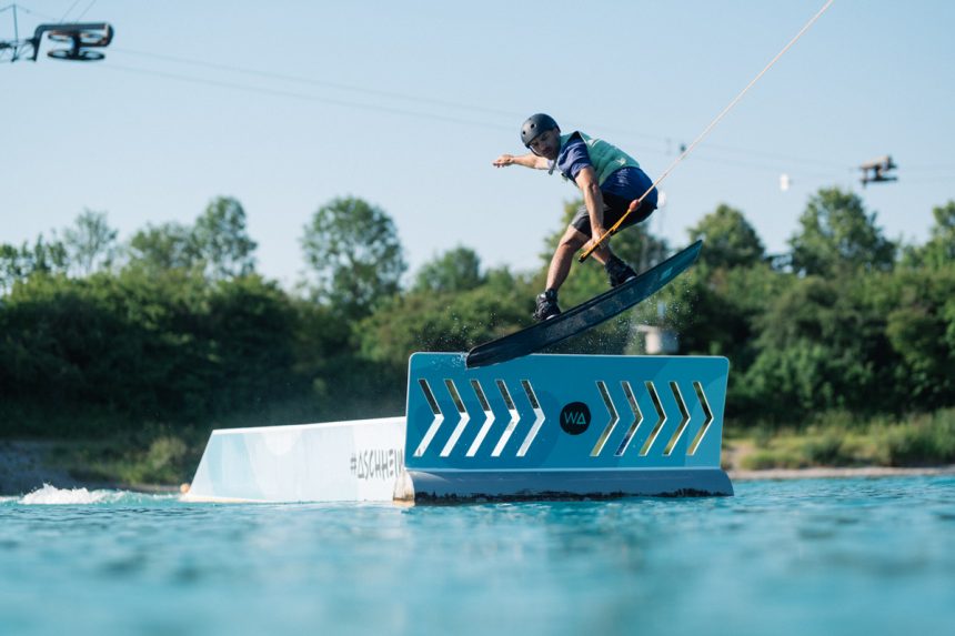 Unser Setup im Wakepark wird regelmäßig umgebaut. Die Features von UNIT Parktech eignen sich dafür ideal. Sie sind leicht auseinander zu bauen und so erwarten die Rider immer wieder neue Herausforderungen. Die Park-Crew aus aktiven Wakeboardern kann sich hier voll ausleben.