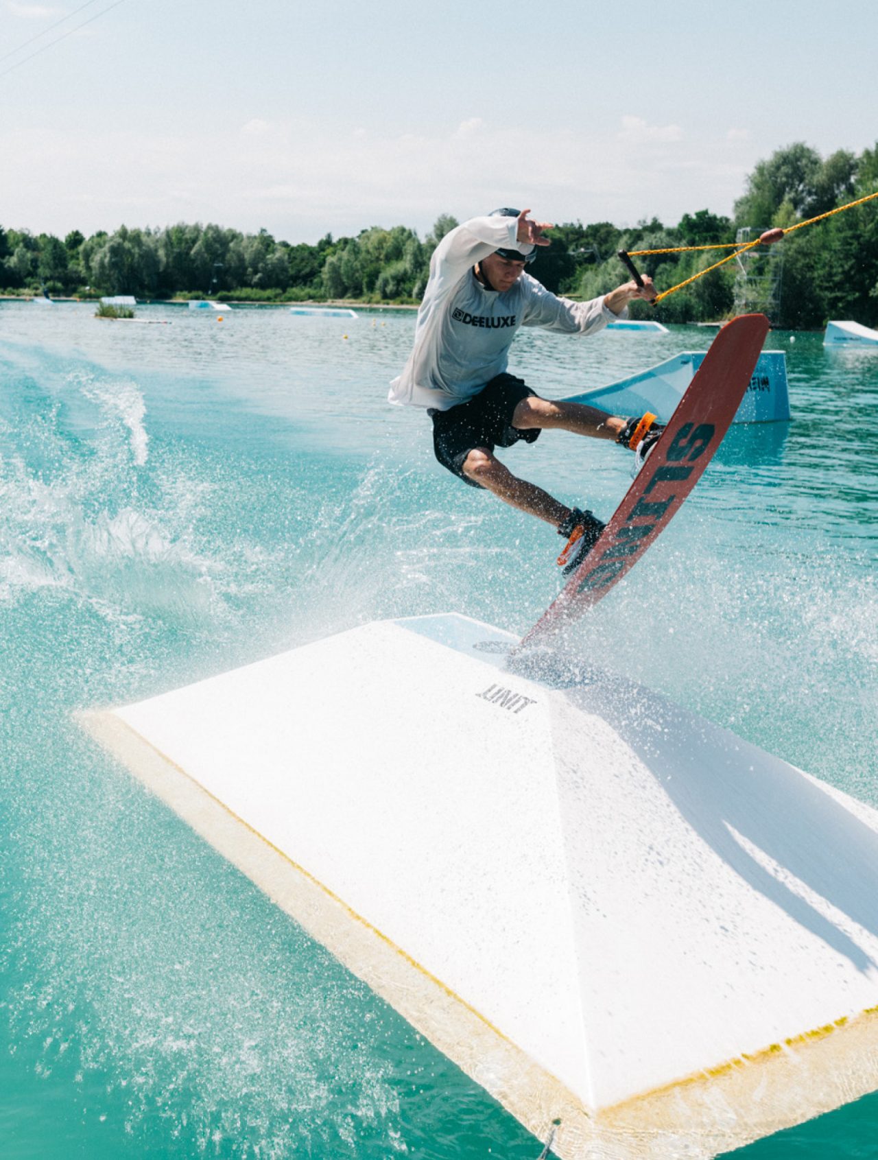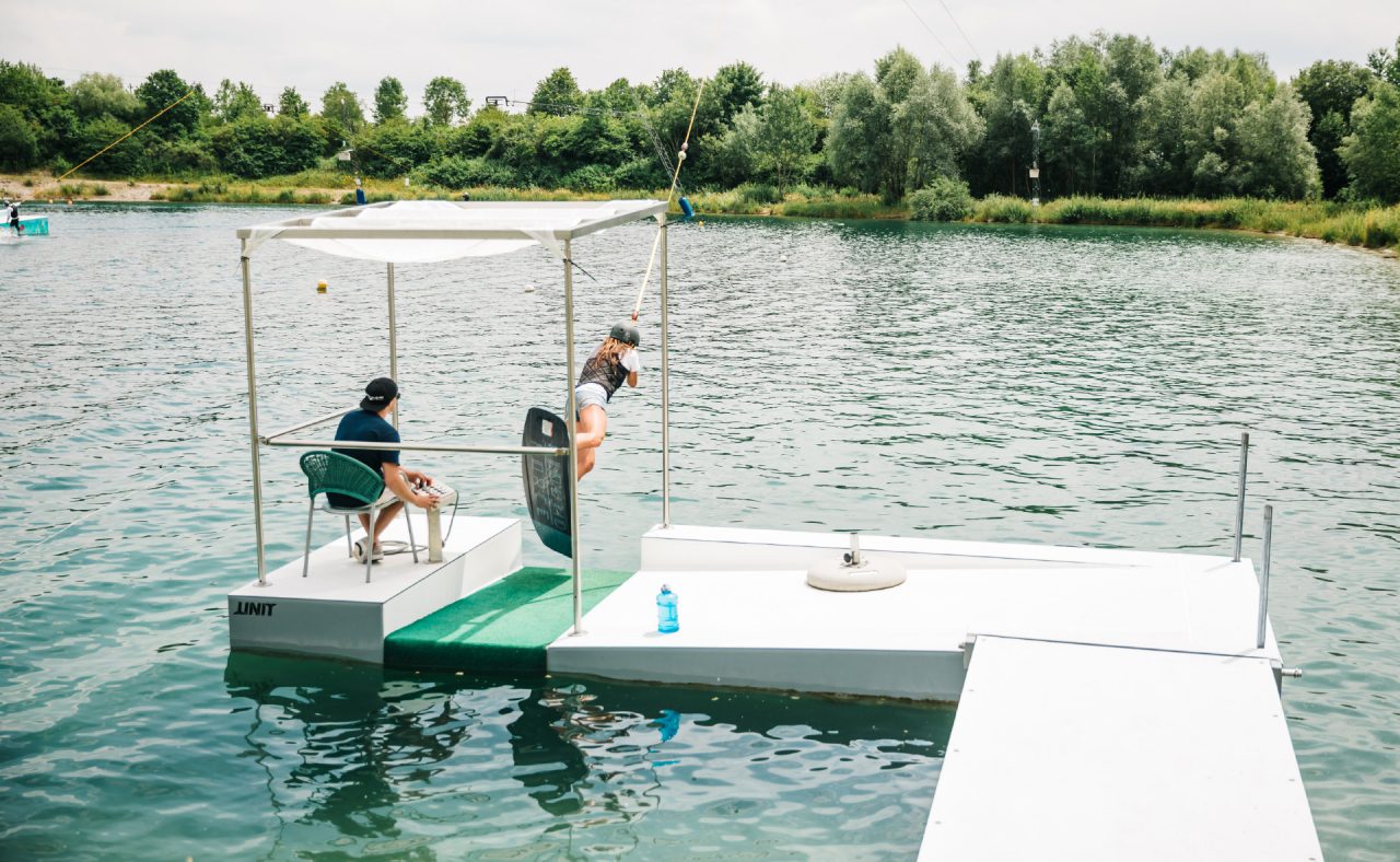 Unser Setup im Wakepark wird regelmäßig umgebaut. Die Features von UNIT Parktech eignen sich dafür ideal. Sie sind leicht auseinander zu bauen und so erwarten die Rider immer wieder neue Herausforderungen. Die Park-Crew aus aktiven Wakeboardern kann sich hier voll ausleben.